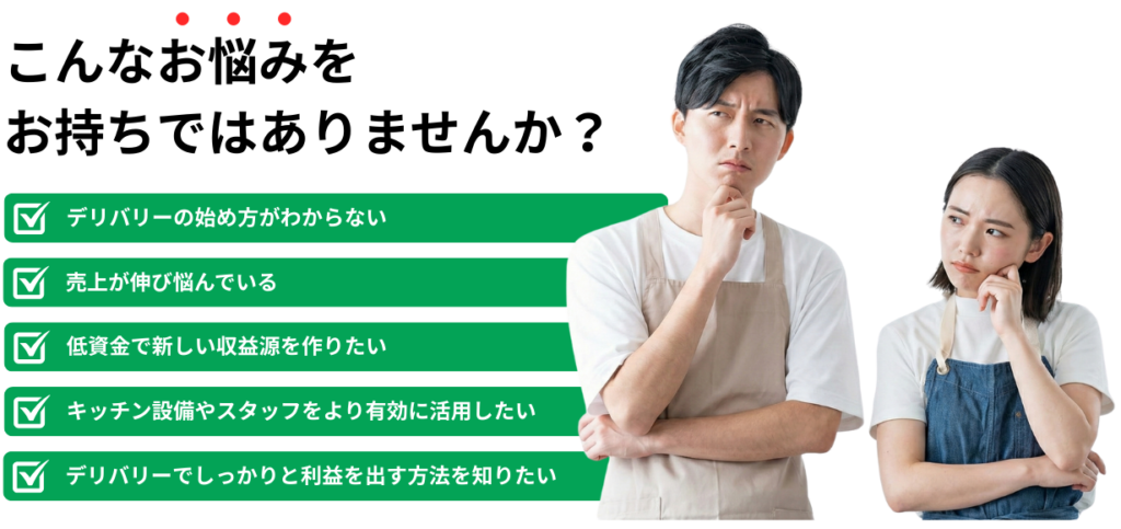 デリバリーに限らず、店舗スタッフの採用や集客など、飲食店様が抱える様々な課題の解決をお手伝いしています。